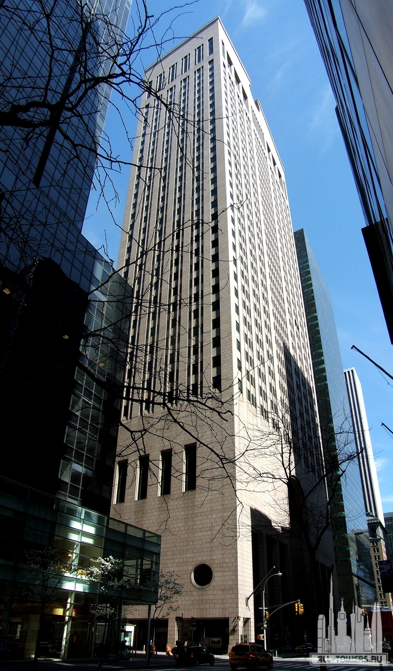 Небоскрёб высотой в 197 метров с 37 этажами, расположенный на Мэдисон-Авеню, 550, между 55-й и 56-й улицами в Манхеттене (первоначально — AT&T-билдинг). Она была разработана архитектором Филипом Джонсоном и его партнером Джоном Берджи и построена в 1984 году. Немедленно возникли пересуды вокруг её вершины, зато многие искренне восхищались зрелищным входом в виде арки высотой в семь этажей. С этими орнаментальными дополнениями здание вполне вписалось в рамки архитектурного модернизма, требующего абсолютного функционализма и скромного дизайна. Некоторые критики называют его образцом постмодернистской архитектуры.